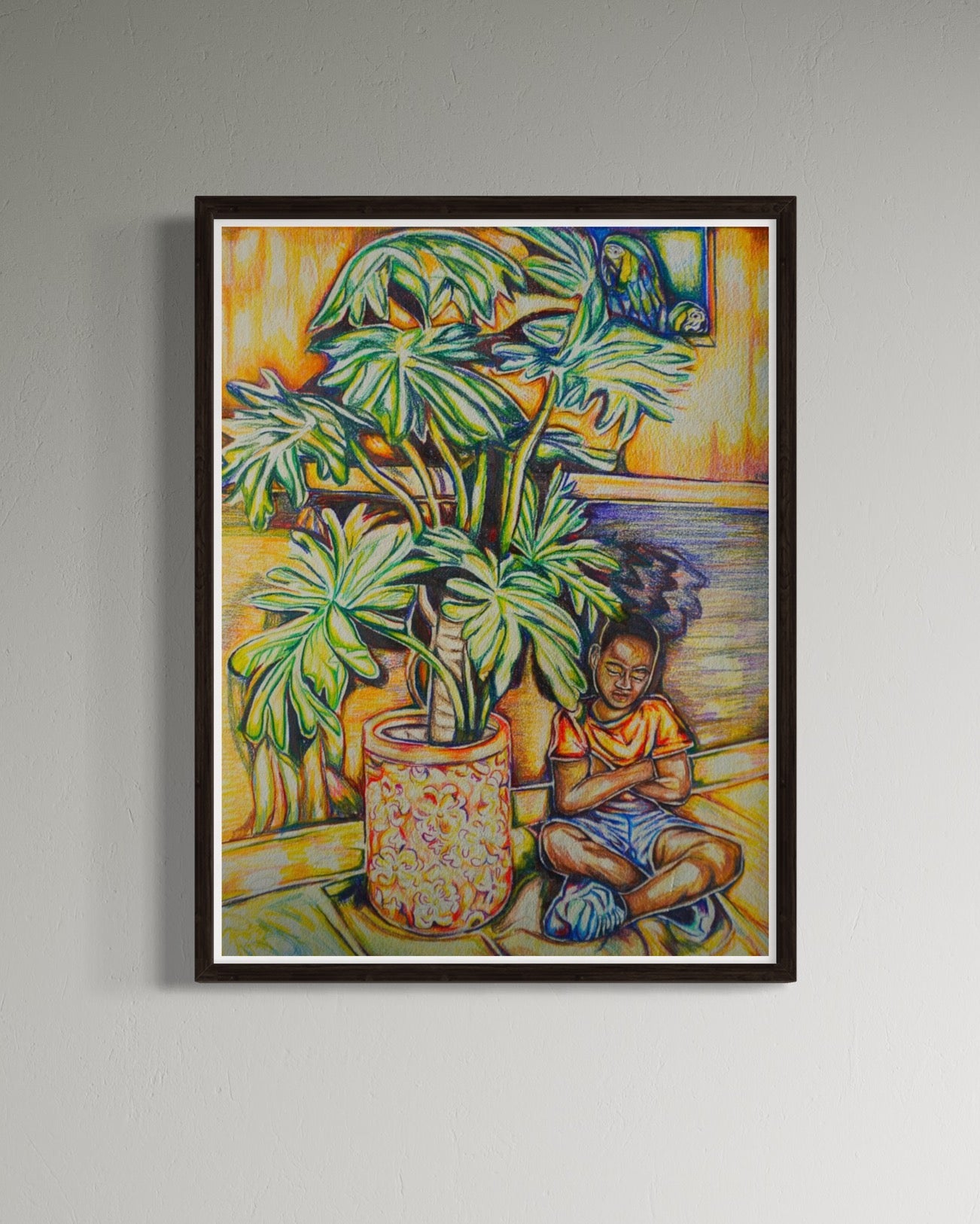 “When I look at this piece I feel a profound sense of peace. A feeling that I have recently been seeking in my life. The subject, which is drawn with arms reaching out, I feel depicts submission. It’s when we surrender all our fears and pain that we find true peace. I am reminded of that every time I focus my attention on this piece. Thank you, Zion!”