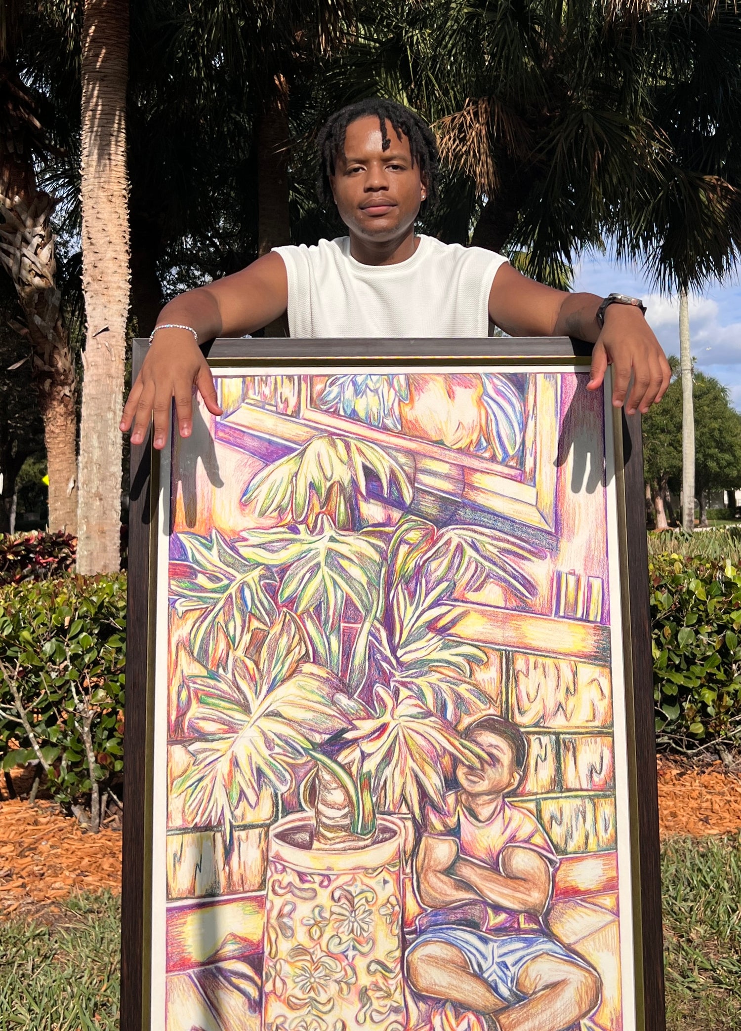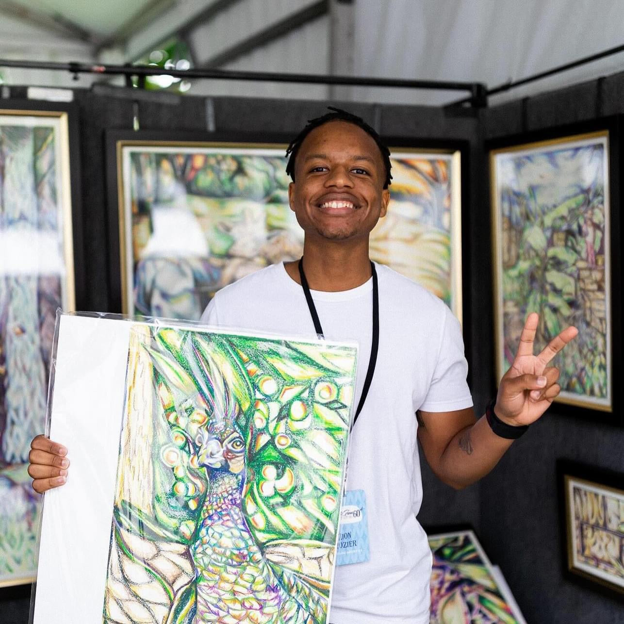"Zion Rozier is an accomplished artist whose work has been featured at prestigious venues and events, including Beaux Art Festival, Miami International Airport, Coconut Grove Art Festival, Pinecrest Gardens, and the Boca Raton Museum Festival. After experiencing the loss of a close friend to gun violence, they turned to art as a path to healing and purpose. Their creations explore resilience, connection, and hope, resonating deeply with communities."